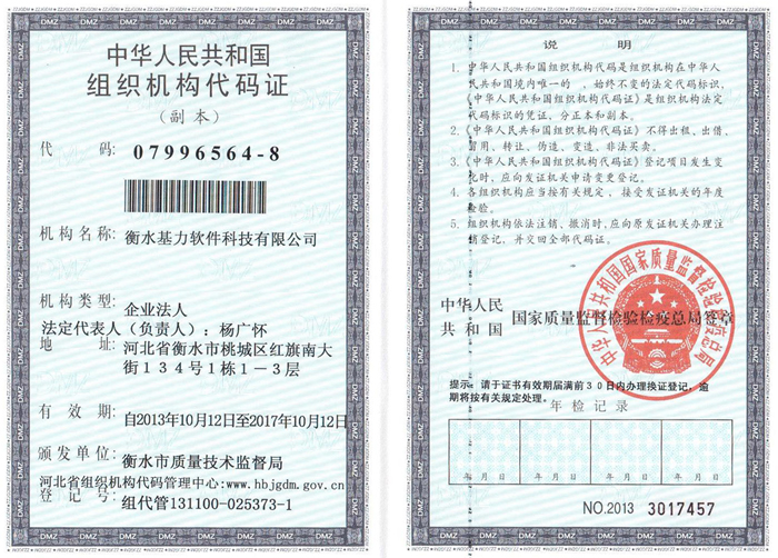 衡水基力软件科技有限公司企业法人营业执照(正本) 衡水基力软件科技有限公司企业法人营业执照(副本) 衡水基力软件科技有限公司税务登记证(国税正本)衡水基力软件科技有限公司税务登记证(国税副本) 衡水基力软件科技有限公司税务登记证(地税正本) 衡水基力软件科技有限公司税务登记证(地税副本) 衡水基力软件科技有限公司组织机构代码证(正本) 衡水基力软件科技有限公司组组织机构代码证(副本)