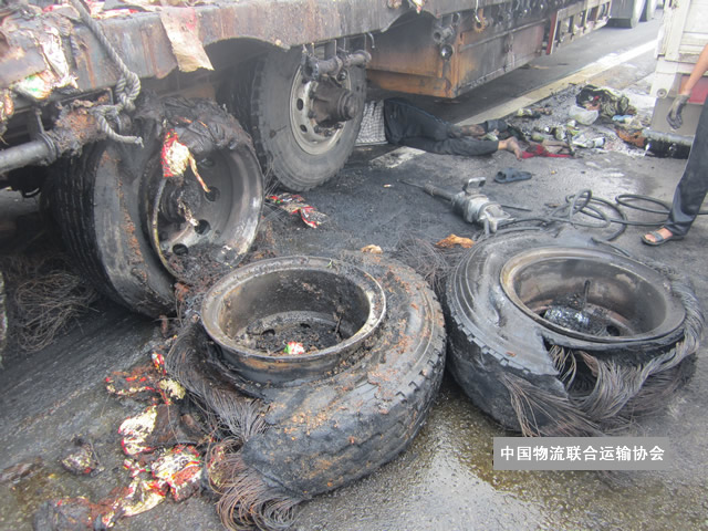 出险原因:标的车行驶中轮胎着火,造成货物损失。
